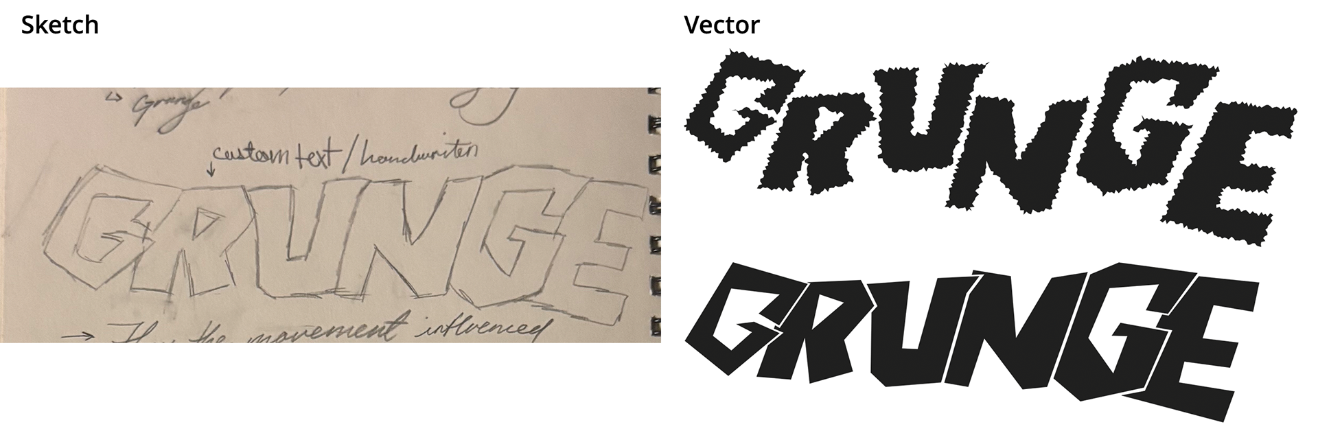 So to start, I collected imagery and textures that would be useful for the final design of the cube. Also, I sketched a variation of the type that would possibly be used on the final cube. During this step, I also created a variety of scratch effects to go along with the other items I developed.